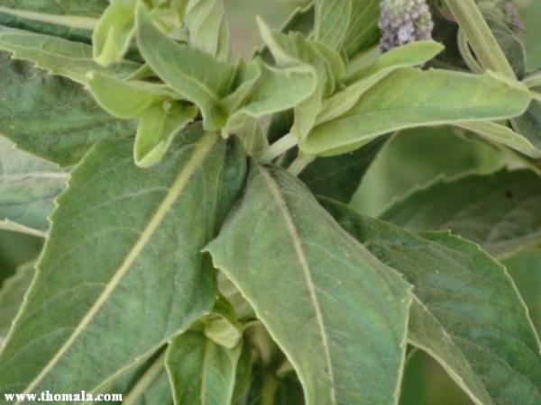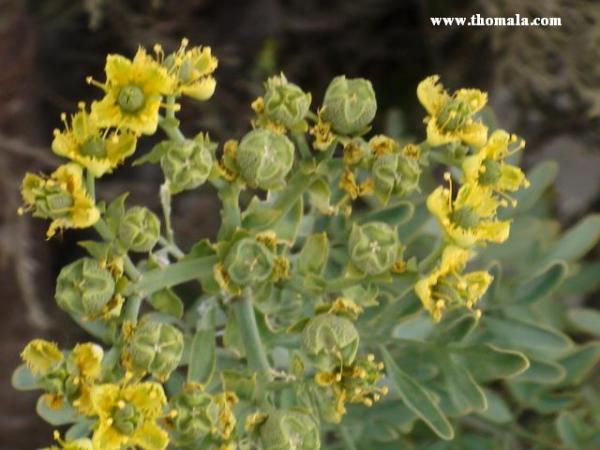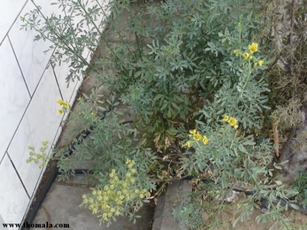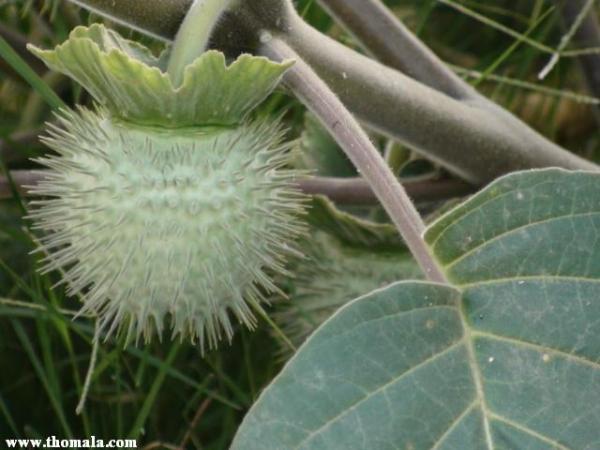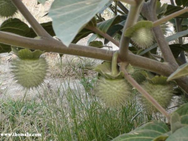 والآن الى شجيرة شائنة الرائحة عند فرك أوراقها أو كسر فروعها , قطنية (ناعمة جدا) الملمس , سهلة الكسر , أوراقها أكبر قليلا من حجم ورق الحماط , وثمارها دائرية كما تظهر في الصورة وأكبر من كرة التنس .