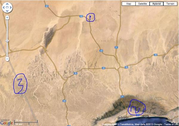 علما ان الأرقام في الصورة الثانية يشير فيها الرقم (1) الى موقع عبار ورقم (2) يشير لمدينة صلاله ورقم (3) يشير للحدود الغربية لعمان مع اليمن , والسهم في الصورة الثالثة يشير الى موقع عبار . ملف مرفق 3123 ملف مرفق 3124 ملف مرفق 3125 |