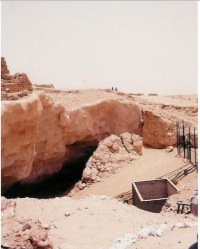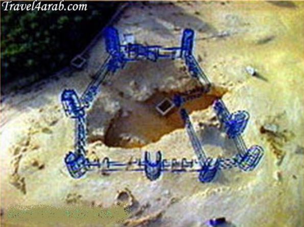 ربما لاحظتم في الصور السابقه وجود بناء على هيئة بركة تتوسط الحفرة التي تتوسط الموقع ايضا , تلك البركة كانت مخصصة للمياه التي تشفط من داخل التجويف الصخري للتأكد من محتوياتها قبل ضخها الى الخارج ..