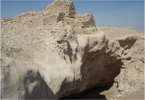 وفي الصورة ادناه ستلاحظون دعامة اسمنتيه داخل التجويف لدعم صخور ايلة للسقوط , كما تلاحظون بالوسط بناء اسمنتيا على هيئة مدخل يفضي الى درج لا تشاهدونه يقود الى تجويف صخري اعمق . ويعتلي الجرف بقايا بنيان يعتقد المستكشفون انه لأحد ابراج القلعه التي كانت تعتلي ربوة تعلو ما حولها ويتوسطها التجويف الصخري الذي يحتوي على الماء العنصر الهام للحياة في الداخل . ملف مرفق 3130 |