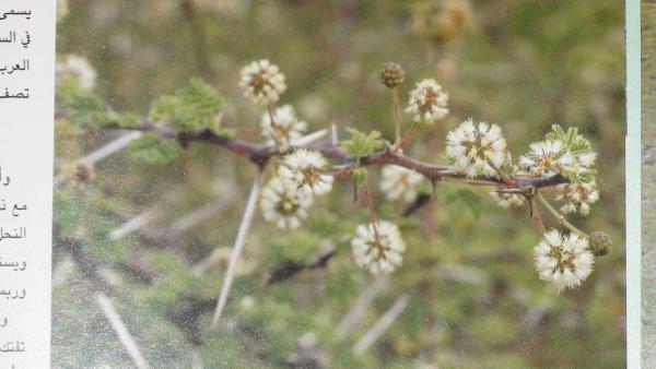 أولا , أدناه صورة شوكتي السمره , حيث تلاحظون في الصورة وجود ثلاثة نوامي أحدها (الى اليمين قليلا) مائل الى ألأسفل وعليه يظهر نوعا الشوك (القصير المحجن والطويل ألأبيض) اللذان يطلعان على نوامي السمر . ملف مرفق 1375 ثانيا , أدناه صورة شوكة السلمه . ملف مرفق 1376 ثالثا , أدناه صورة شوكة الضهياء , وهي عباره عن ثلاث شوكات قصيرة وأحيان زوجية , ومنحنية قليلا في الغالب , ومجتمعة المنبت , كما تشاهدون شكلا كرويا قد يظهر أحيانا على بعض النوامي , وقد لا يظهر ألا نادرا . ملف مرفق 1377 |