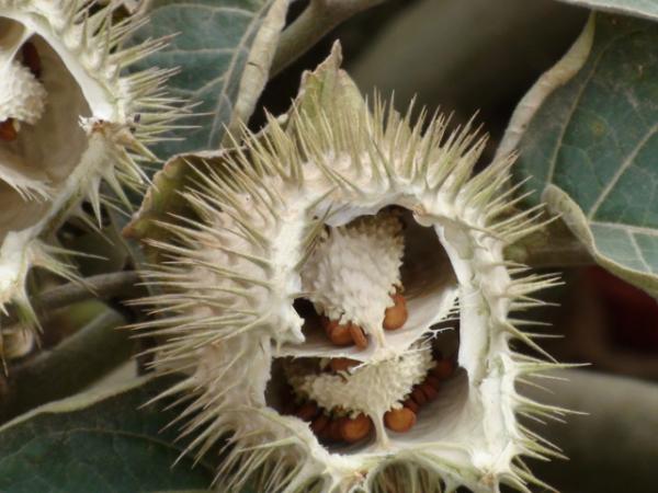 أدناه أربع صور لثمرة شوكة السويد المحاطة بزهور صغيرة , وقد شاهدت النحل يقدع عليها (يجرسها) وكذلك أصناف من الحشرات الطائره .