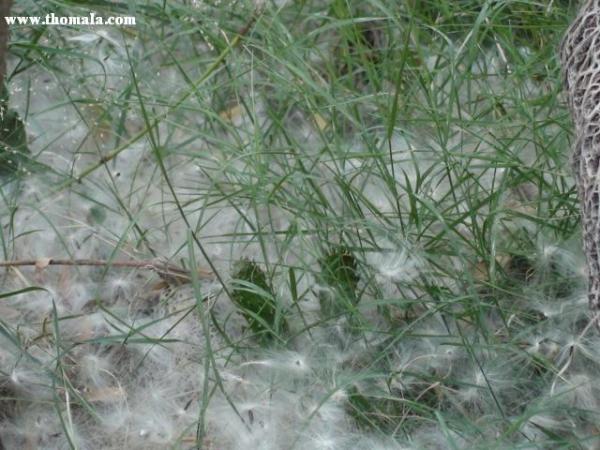 لاحظوا في الصور ألأربع التاليه , كيف أنتشرت على ألأرض (تحت سوق البرشومي) البذور الطياره لهذه الشجيرة المتسلقه ....