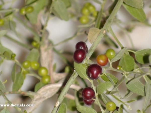 لاحظوا ورقها الذي قسته وبدا لي بعضه بطول واحد ونصف سم , وعرض 75ملم .(ثلاثة أرباع سم) . ولاحظوا حجم ثمرها الذي يشابه ثمر النيم حجما ولونا وشكلا (في حجم الحمصة الصغيره) . مذاقه بدا لي حلوا في البداية يتحول سريعا الى المرارة , ولم أبلعه تخوفا من أحتمال سميته ... ملف مرفق 1482 ملف مرفق 1483 ملف مرفق 1484 |
