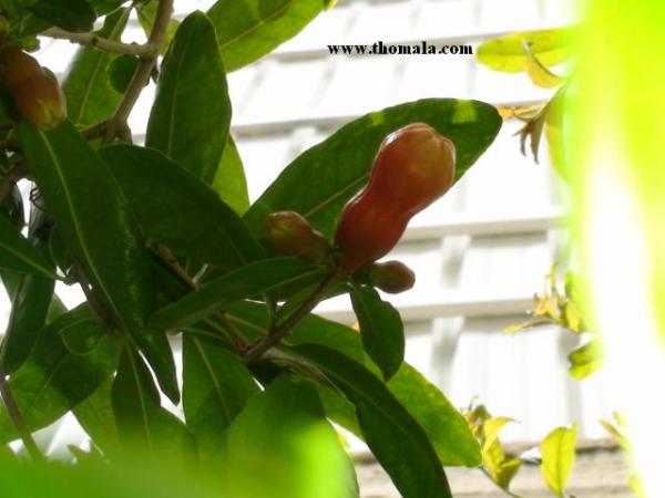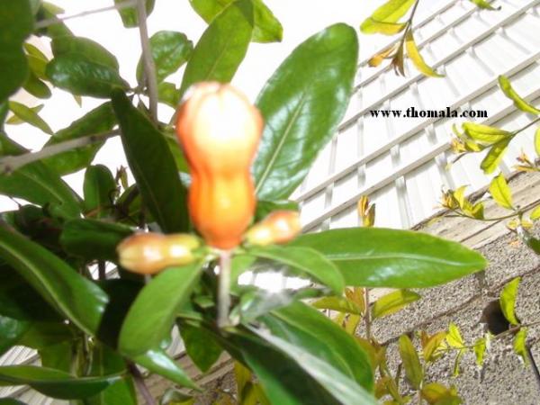 سبق أن صورت لكم ألأغصان الغضة الصغيرة للرمان , واليوم صورت لكم زهرة الرمان قبل تفتحها ..