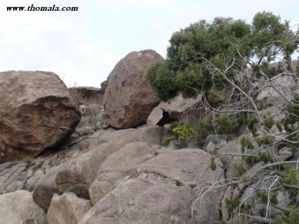 http://www.thomala.com/vb/attachment...1&d=1266675979 تأملوا في الصوره ألأولى , تأملوا الرادف اللي يقتفي الشجره في وسط الصوره , وترونه هو نفس الرادف اللي يظهر مجوف على شكل خوذه في الصوره الثانيه, وأقدر أرتفاعه بخمسه أمتار تقريبا . موقعه في طرف الركح اللي يشبه الصحن , واللي أخذت الهضبه منه أسمها , وغيره الكثير من الكهوف الكبيره اللي أشكالها عجيبه وتملا الهضبه , وعسى الرويعي وابو عبدالرحمن أن قدروا يصورون لكم بعضها في طلعتهم الجايه .. |