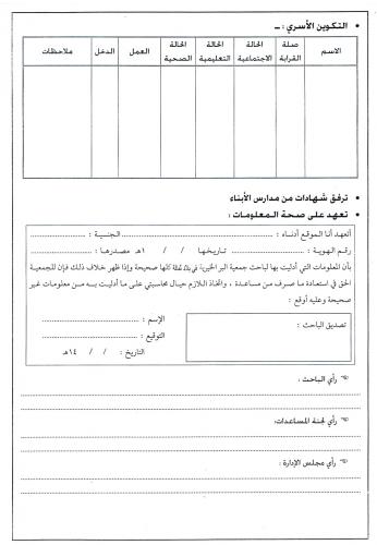 موظف الجمعية/فايز الثمالي * ملاحظة :الملفات المرفقة نموذج الطلب ـ في حالة احتياج الباحث أو المحتاج الذي لا يستطيع الوصول لمقر الجمعية ، ومن ثم تزويد الباحث بالطلب. |