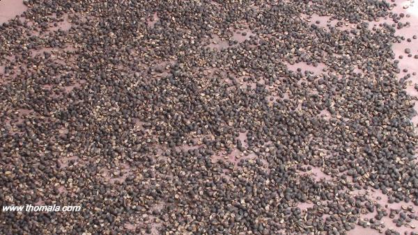 تجفيف البن بطرق بدائيه , وبعدها يفرز النوى اللي تسمونه البن وتسمون مشروبه بالقهوه , ويفرز القشر اللي يسمون العامه مشروبه بالقشر ...