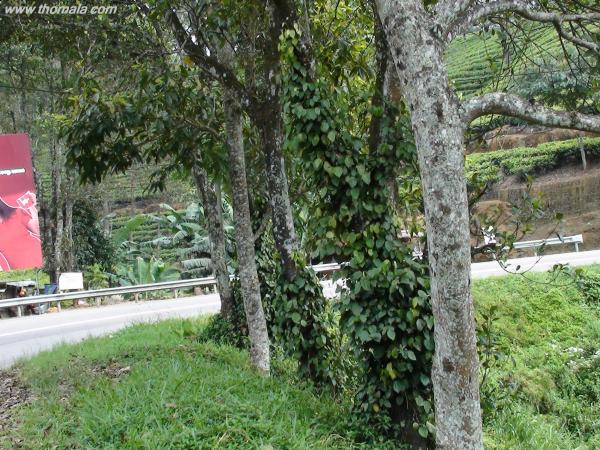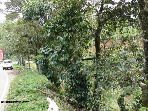 النباتات اللي تلاحظونها متسلقه على جذوع ألأشجار على حافة الطريق في الصورة ألأولى كلها فلفل أسود نبتت طبيعي بدون عنايه ولا رعايه ..