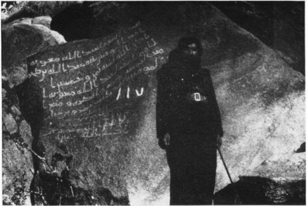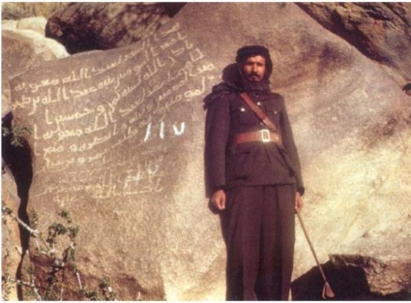 هذا رجل بألف رجل ولنا معه شأن لاحقا , أنه هاري سانت جون بريدجر فيلبي Harry St. John Bridger Phillby الذي جاء الى الدولة السعودية جاسوسا لكنه اسلم وتسمى بعبدالله فلبي وقلب السحر على الساحر وتحول الى رجل من رجالات الدولة ومستشاريها المخلصين للمملكة والمدافعين عنها . ادناه مثال على النقوش التي صورها : http://www.qadeem.com/vb/attachment....1&d=1364041146 |