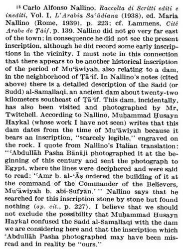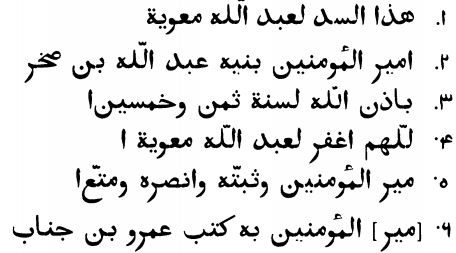 نقوش اموية على سد سيسد بالطائف .. بسم الله الرحمن الرحيم صدق من قال , وما آفة الأخبار الا رواتها , فهاهنا مكمن الداء , وهاهنا حيث حار الحكماء ولم يعثروا لهذا الداء على وصفة ناجعة للدواء , اما ما بعد :