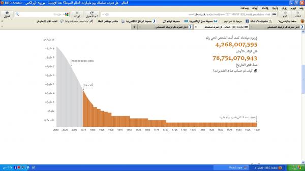أبرز تقرير صادر عن الأمم المتحدة التحديات التي تواجه البشرية مع بلوغ عدد سكان العالم سبعة مليارات نسمة وفقا لتقديرات المنظمة الدولية بنهاية شهر أكتوبر/تشرين الأول 2011. ووفقا لهذه التقديرات فإن عدد سكان العالم زاد بأكثر من الضعف في الخمسين عاما الأخيرة بعد أن كان معدل النمو بطيئا في معظم فترات التاريخ الإنساني. ما هو تسلسلك ضمن تعداد سكان العالم عبر التاريخ ؟ ضع تاريخ ميلادك بالميلادي وليس بالهجري في الخانة التالية لتكتشف ذلك. ملف مرفق 2943 مثال افتراضي ملف مرفق 2944 المشكلة ان اكثر السعوديين من الاعمار 40 تقريبا فما فوق تم توثيق ولادتهم في 1-7 !!! كل الأرقام الخاصة بتعداد السكان تعتمد على تقديرات إدارة السكان بالأمم المتحدة وكل حسابات صندوق الأمم المتحدة للسكان. أما بقية المعلومات فمن إدارات أخرى تابعة للأمم المتحدة و(the Global Footprint Network) وهي منظمة غير حكومية تقيس حجم الموارد المطلوب لإعاشة السكان، والاتحاد الدولي للاتصالات. إذا أردت المزيد من المعلومات يمكنك زيارة اضغط هنا موقع صندوق الأمم المتحدة للسكان والإطلاع على الجزء الخاص بوصول التعداد إلىاضغط هنا 7 مليارات نسمة. ملحوظات بشأن البيانات: - تقبل بيانات المواليد بعد عام 1910 فقط ، والدول التي يزيد عدد سكانها عن 100 ألف نسمة. - بقدر الإمكان تم استخدام متوسط لتقديرات الأمم المتحدة ومتوسط للأرقام بين عامي 2005 و 2010. - مؤشرات قياس عدد السكان(الساعة السكانية) الخاصة بعدد سكان العالم بصفة عامة والدول بصفة خاصة هي تقديرات تعتمد على آخر أرقام الأمم المتحدة ومعدلات النمو، ولذلك فهي قد لا تشير إلى العدد بدقة تتماثل مع بقية المؤشرات وذلك بسبب طريقة تصميمها. - تم تقسيم الدول إلى ثلاث مجموعات متقدمة ونامية وأقل نموا وذلك بحسب آخر تقارير الأمم المتحدة بشأن أهداف التنمية في الألفية الثانية. - اما دول شرق أوروبا التي تشهد مرحلة انتقالية فقد تم تصنيفها ضمن الدول المتقدمة. لتعرف ترتيبك اضغط هنـــــا<<< |