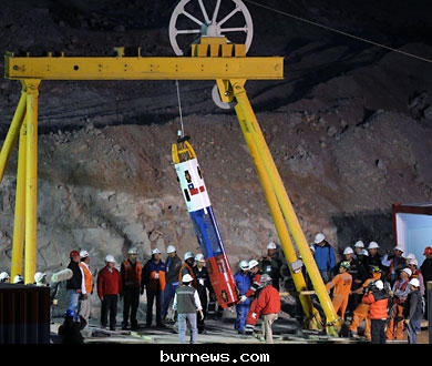 أكثر من 3 آلاف صحافي ومصور تلفزيوني ومهندس وعامل في حقول الإغاثة وغيرها، إضافة إلى ذوي المحاصرين العالقين وآخرين فضوليين، وصلوا إلى موقع المنجم على مراحل منذ انهياره فجأة على من فيه يوم 5 أغسطس (آب) الماضي، حيث تداعت الأنقاض على مخرجه الرئيسي وحاصرت عماله تحت عمق نادر وفي حدث وصفته وسائل إعلام عدة تشيلية وغيرها، اطلعت "العربية.نت" على تقاريرها ومحتوياتها، ووصفته بأنه لا شبيه له في تاريخ الانهيارات المنجمية حتى الآن. وما حدث لعمال منجم "سان خوسيه" الواقع في برية "أتاكاما" الشبيهة طبيعتها ببادية صحراوية تقع بجوار مدينة "كوبيابو" البعيدة في شمال تشيلي 725 كيلومترا عن عاصمتها، سنتياغو، هو نادر بكل المقاييس تقريبا، فقد ظل العمال بعد الانهيار، وطوال 17 يوما، في غياب كلي عن العالم ومن دون حس ولا خبر. ولأنهم ظنوهم أمواتا تحت الأنقاض، فقد قام نجم الكرة البرازيلي الشهير، بيليه، بالمشاركة في قداس أقاموه لأرواحهم في إحدى كنائس سان باولو بعد أن علم أن بين العاملين لاعب تشيلي بكرة القدم كان يعرفه في ثمانينات وتسعينات القرن الماضي، واسمه فرانكلين لوبوس. واختصارا، فإن التواصل مع العمال المحاصرين تم منذ اكتشاف أنهم مازالوا أحياء في ما بعد، وما زال يتم طوال 50 يوما مضت حتى الآن، من خلال فتحة صغيرة تم حفرها بقطر 10 سنتيمترات، وإسقاط أنبوب فولاذي منها لينزل عبره ماء معلب وغذاء مجهز قدمته لهم وكالة الفضاء الأميركية (ناسا) بعد طلب المساعدة منها لخبرتها في تعليب الماء والغذاء الخاص برواد الفضاء وهم في حالة انعزال كلي داخل مركباتهم خارج الأرض. ومن تلك الفتحة الصغيرة أيضا يتم تزويد المحاصرين برسائل تصل إليهم من ذويهم، كما وبإرشادات ونصائح طبية يرسلها إليهم أطباء معسكرين في المكان، بل وبأسئلة يطرحها عليهم صحافيون في بعض الأحيان ممن يستخدمون كاميرا فيديو تم إنزالها إلى المكان لتصوير العمال عند الحاجة إلى تصويرهم، ثم تزويدهم بالأهم إضافة للماء والغذاء، وهو الأوكسيجين الذي يتم نفثه بلا توقف عبر الأنبوب المتدلي من الفتحة إلى المكان المحاصر فيه من يمكن تسميتهم بأهل الكهف برغم أنهم بلا كلب وعددهم معروف. كبسولة الإصعاد اسمها من طائر "الفينيق" وبحسب ما صرح به وزير التعدين التشيلي، لورانس غلبورن، فإنه متفائل بإخراجهم من خلال كبسولة اسمها "فونيكس" (على اسم طائر الفينيق الأسطوري الذي يحترق ثم ينبعث حيا من الرماد) عرضها 66 وطولها 190 سنتميترا صنعوها خصيصا لتتدلى عبر نفق عمودي تم حفره أوسع منها قليلا وانتهى العمل فيه السبت الماضي بعد 33 يوما من حفر بلا توقف في الليل والنهار. والكبسولة، المتصلة برافعة لتجعلها تعمل كما المصعد، هي أطول بعشرة وأعرض بأربعة سنتيمترات من طول وعرض كتفي أكثر العمال طولا وسمنة، بحيث يتسنى لأي عامل يدخل إليها حين إنزالها إلى قعر المنجم أن يصعد من دون أي إشكال، برغم أن عملية إصعاد عامل واحد ستستغرق من ساعة إلى ساعتين، بحسب ما ذكر الوزير غلبورن الذي قال إن إخراج الجميع قد يستغرق يومين. كما أن الكبسولة "فونيكس" مزودة بميكروفون وبأنبوب للأوكسيجين وبكاميرا للاتصال مع العامل حين تصعد به مسافة 700 متر، أي أقل بـ 128 مترا من ارتفاع برج خليفة المعتبر في دبي أطول بناء في العالم، إضافة إلى أنها مزودة بجهاز لمراقبة نبضات القلب، وسيتم إنزالها بسرعة 70 سنتيمترا بالثانية. أما صعودها وبداخلها أحد العمال فبسرعة معدلها 10 أمتار بالدقيقة تقريبا، وكله حسب حالة كل عملية انتشال. وما أن يبدأ المحاصرون بالخروج حتى يشرف على كل منهم فريق طبي جاهز لاستقبالهم فور بدء الوصول من الأعماق يومي الأربعاء والخميس على الأكثر، علما أن وزير الصحة التشيلي، خايمي مانياليش، قال إن فحوصات طبية تجرى لكل عامل عن طريق وصلة فيديو يتم إنزالها يوميا عبر الفتحة الصغيرة، وهو ما يسمونه "العلاج عن بعد" حيث تم اكتشاف 5 حالات حرجة لعمال يبدو أنهم يواجهون "مخاطر نفسية كبيرة وهم في قعر المنجم المنهار، وسيتم نقلهم إلى مستشفى قريب بال