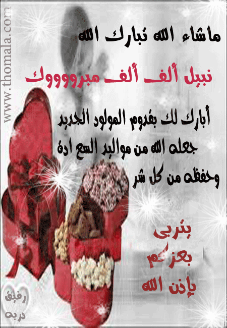 ألف ألف مبرووووك يانبيل ألف ألف مبرووووك يانبيل ألف ألف مبرووووك يانبيل ألف ألف مبرووووك يانبيل ألف ألف مبرووووك يانبيلرزق الأخ الغالي نبيل بن عبد الرحيم الثمالي بمولوده البكر بورك الموهوب وشكرت الواهب وبلغ أشده ورزقت بره يا أغلى هدية من الخالق تتمنى العين ما تفارق اجمل واروع مولود هل بوسط الخلايق الف مبروك للحلوين بقدوم اغلى الغالين الله يبارك فيه ويعين كل من تعب من اجله يا اغلى الناس والغالين مبروك عليكم احلى الحلوين الله يديمه لكم يارب ويجعل دربه اليقين بقدومه هلت البشاير و بصوته هز المشاعر الله يحميه من المخاطر و يجعله دوم طيب الخاطر لاتنسى تعزمنا على العقيقه يا أبو عبد الله
