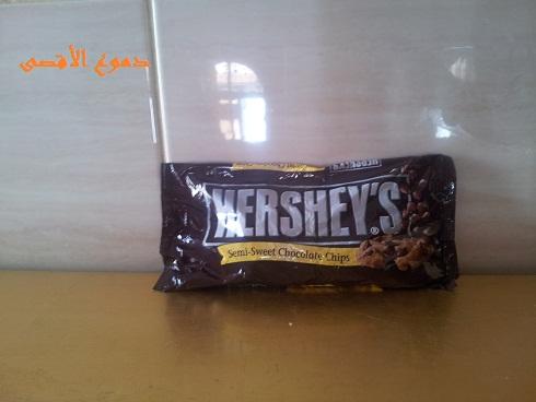 و ادهنيه بشوكلاته نوتيلا وبعدها نضع شوكولاتة هيرشي الحبوب على شكل دمعه لتكون شكل أشواااك - أو حلاوة كزز -